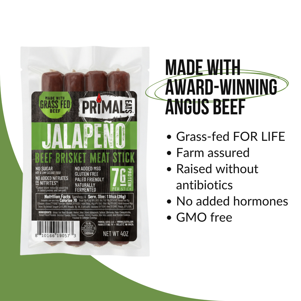 Jalapeño 100% Grass-Fed Brisket Meat Sticks — 4 Pack (4oz)